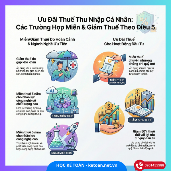 - Sinh viên nhận học bổng khuyến học → Miễn thuế TNCN