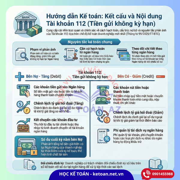 2.Kết cấu và nội dung phản ánh của Tài khoản 112 – Tiền gửi không kỳ hạn