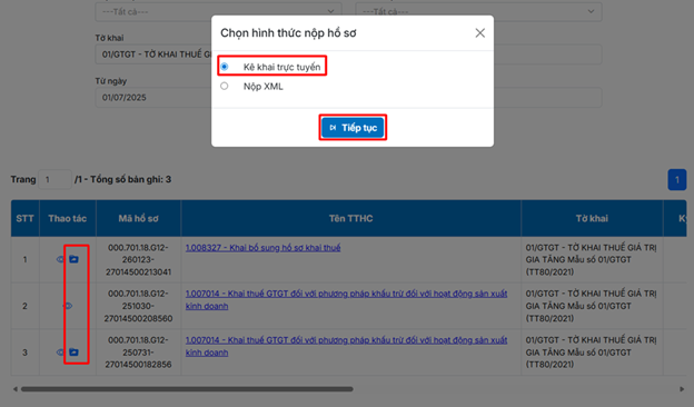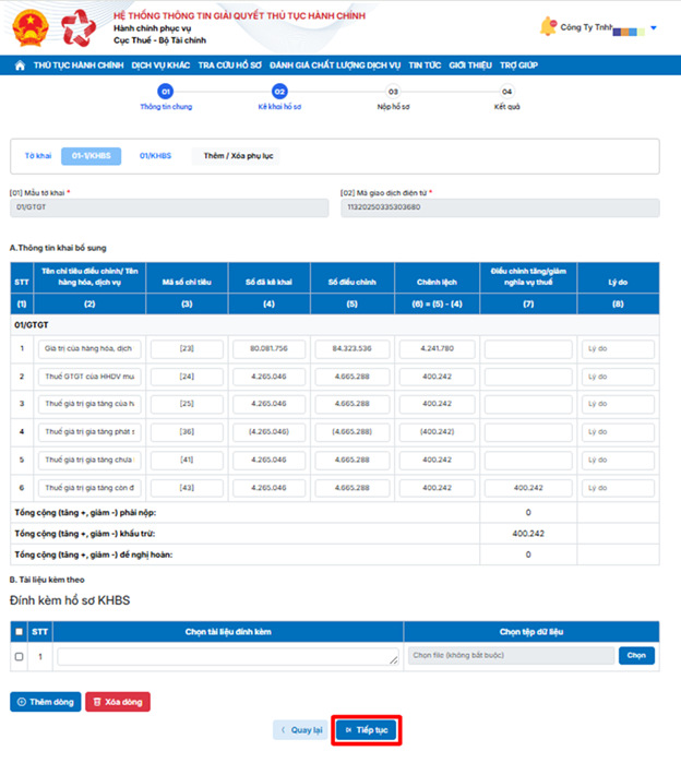 Hướng dẫn kê khai trực tuyến thuế GTGT bổ sung trên trang DỊCH VỤ CÔNG