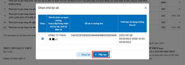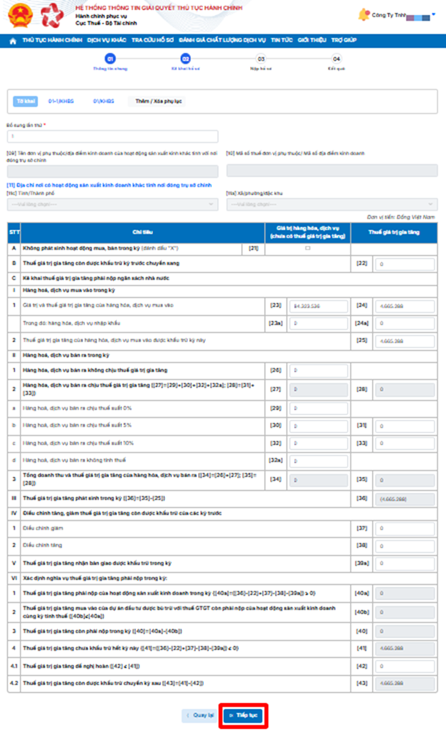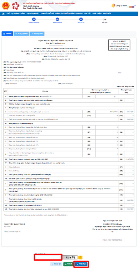 Sau khi kiểm tra điều chỉnh số liệu xong, nhập mã Captcha, chọn Tiếp tục