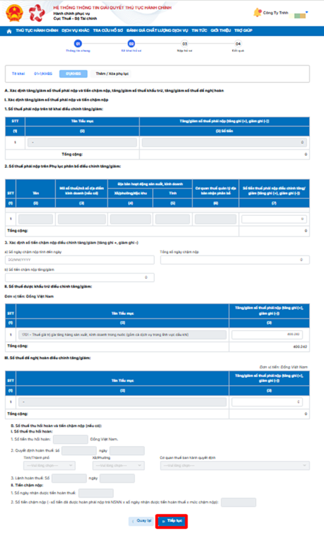 Thực hiện điều chỉnh tờ khai và phụ lục kèm theo