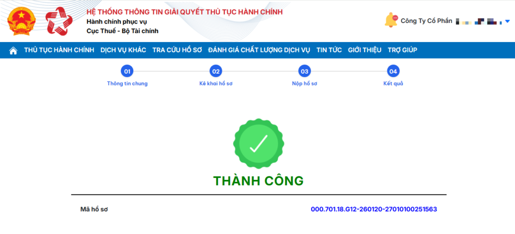 Hệ thống báo nộp tờ khai Thành công.