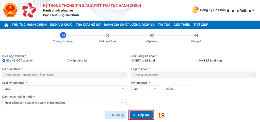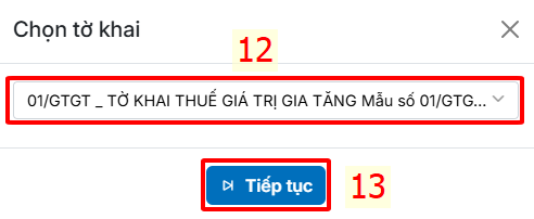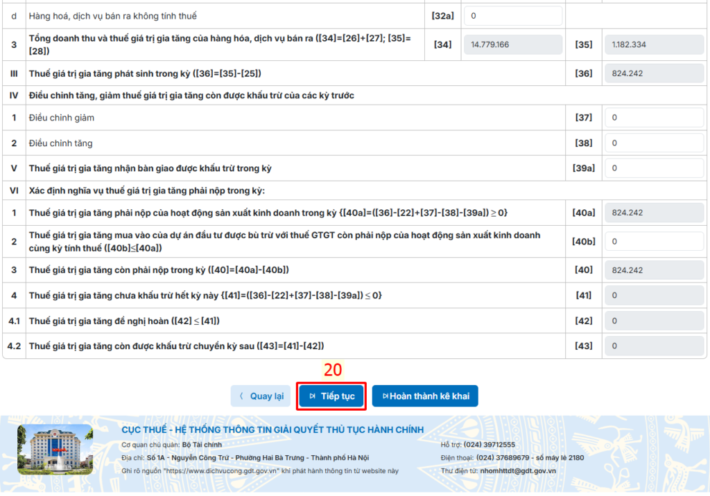 Chọn Tiếp tục để kiểm tra dữ liệu kê khai thuế.