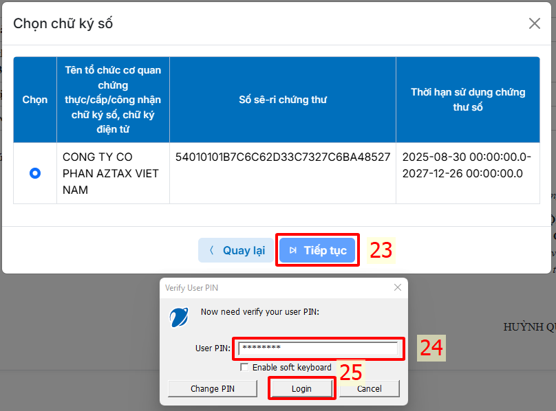 Cắm token vào máy nhập mã pin ký là hoàn thành