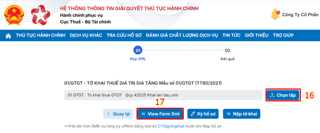 Chọn Nộp XML.